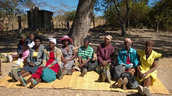Under the shade of a flat topped tree, the women sit on reed mats. Men are gathered and the smell … More